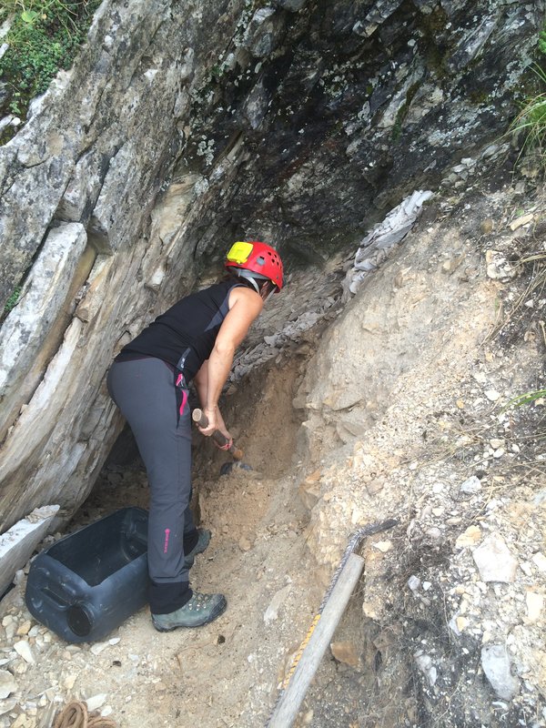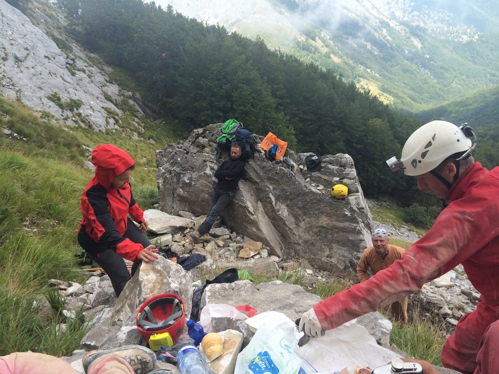 A metà giornata il sole non ha ancora fatto capolino dalla cresta del Corchia,ma abbiamo già movimentato, ma sarebbe più giusto dire estratto, una tale quantità di sassi e terra che il ravaneto poco sotto è ormai irriconoscibile. Igor è sempre in prima fila, impossibile distoglierlo dallo scavo in profondità, da cui esce solo quando non ne può più.