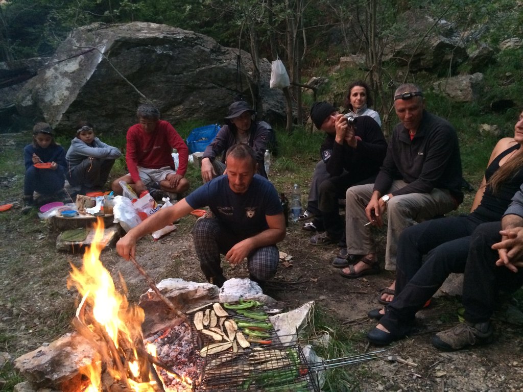 L'alba di una nuova giornata si spande lentamente, i contorni prendono forma, alberi, rocce, vette lontane, e una brezza leggera sale lungo la valle fino al campo facendo fremere le foglie circostanti, ancora cinque minuti, ancora dieci minuti ed e passata un ora nel tepore del sacco a pelo. A questo punto il sole ha fatto capolino riscaldando l'aria e la colazione diventa piacevole.
