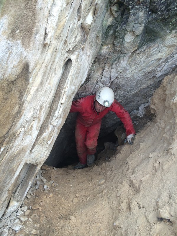 In conclusione a metà mattina siamo come formiche che fanno avanti ed indietro da una tana trasportando materiale di scavo verso l'uscita, la frana ad un certo punto diventa leggermente più verticale che fa ben poco sperare, ma grazie all'intuizione di Stefano riusciamo ad avere la meglio e finalmente nel primo pomeriggio si apre un varco che porta su ambienti più grandi, siamo in Corchia con un nuovo ingresso il 19esimo.